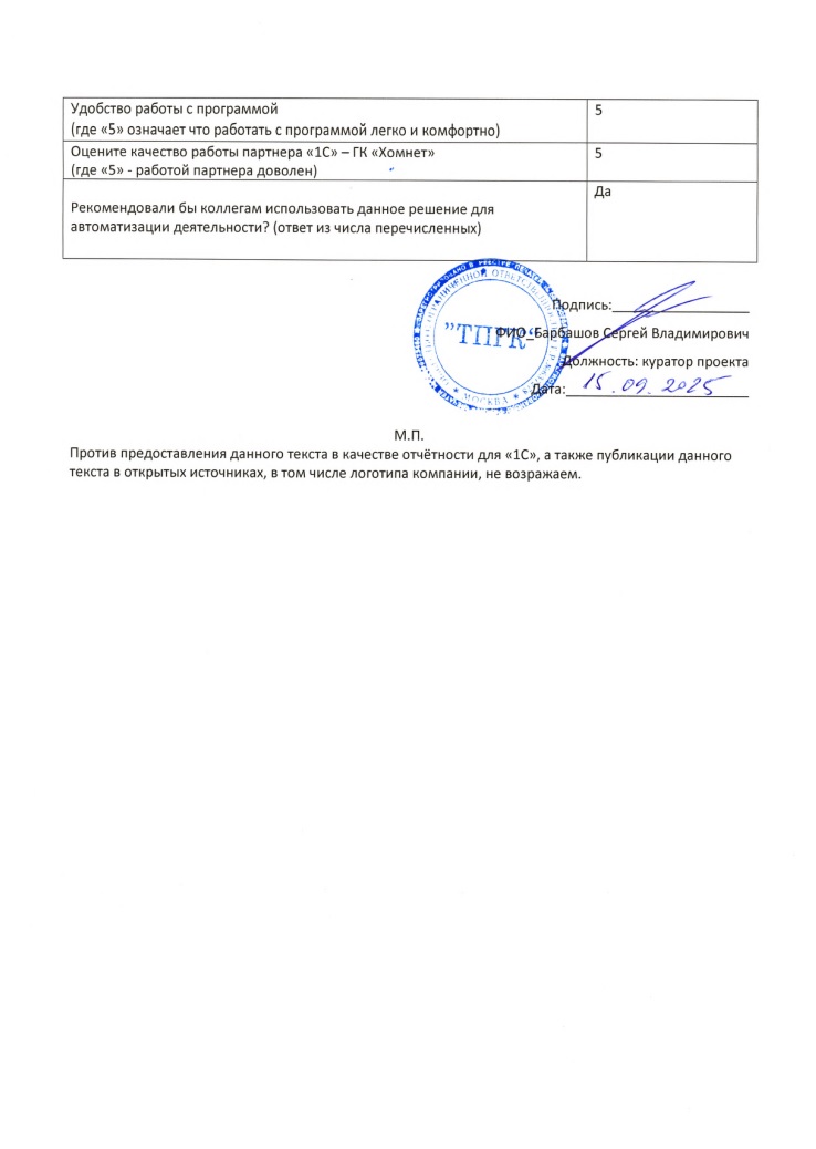 Выражаем благодарность ГК «Хомнет» за оперативную и профессионально выполненную работу», – отметил куратор проекта Барбашов Сергей Владимирович.